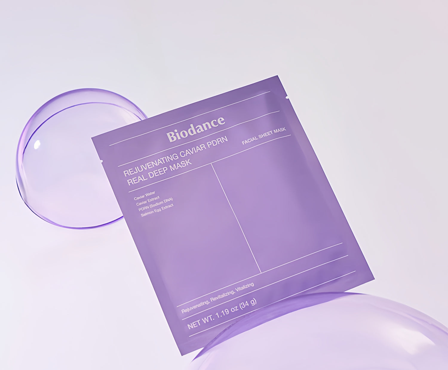 Biodance Rejuvenating Caviar PDRN Real Deep Mask is a hydrogel mask, solidified from 1.19oz (34g) of concentrated serum. As your skin absorbs the active ingredients, the mask becomes transparent.